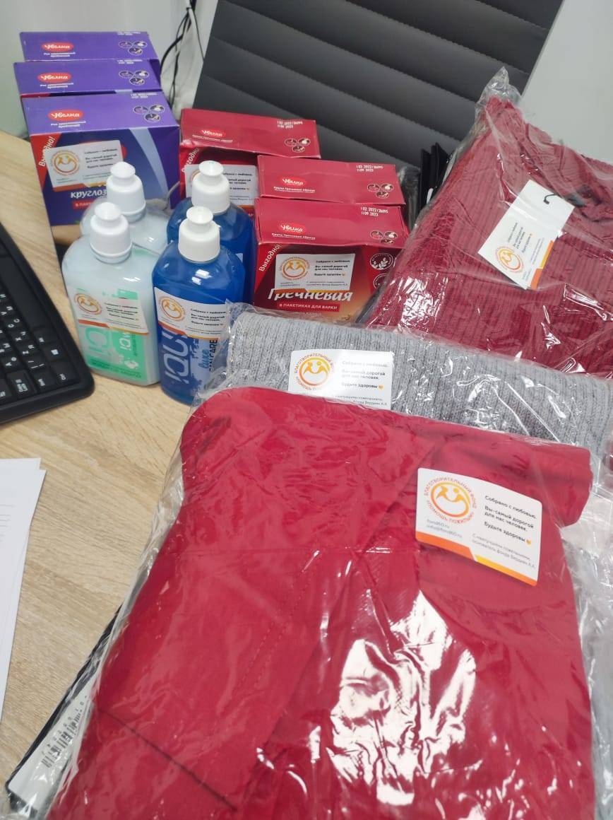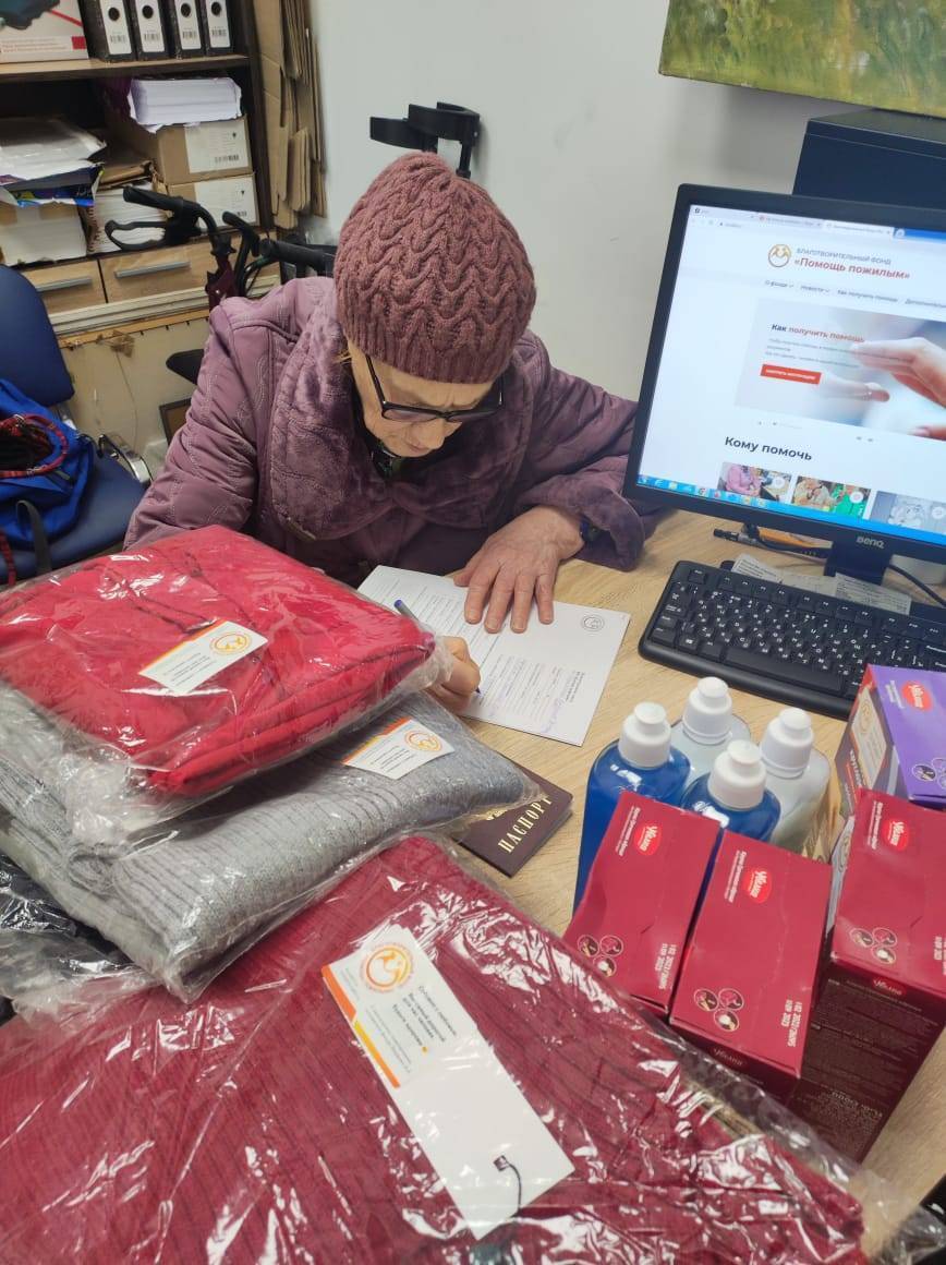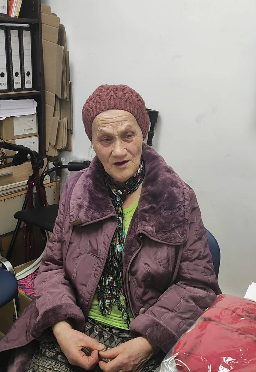 Людмиле Григорьевне мы перредали новые вещи, средства гигиены, опорную трость и продукты питания.