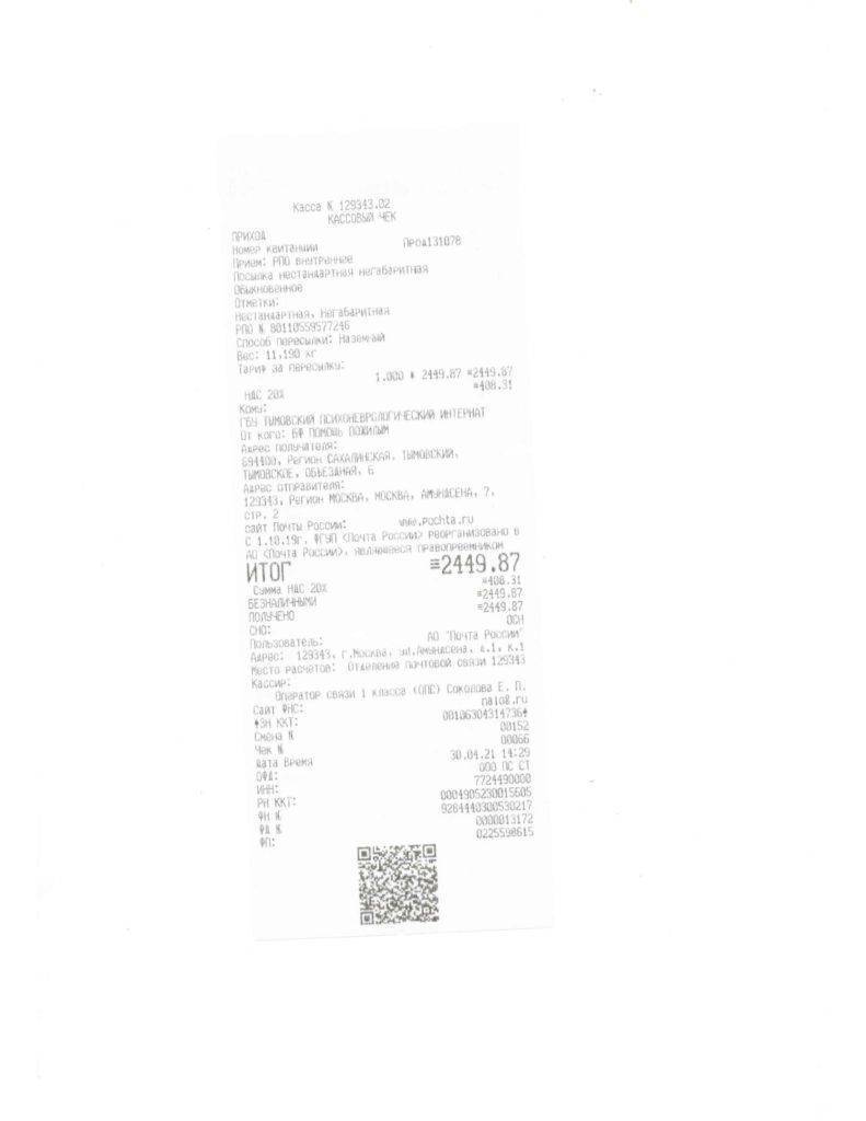 07 апреля 2021 года в фонд поступила заявка на оказание помощи Тымовскому психоневрологическому интернату. Интернат располагается в Сахалинской области. Тымовский психоневрологический интернат нуждается в медицинском оборудовании, продуктах питания, строительных материалах.