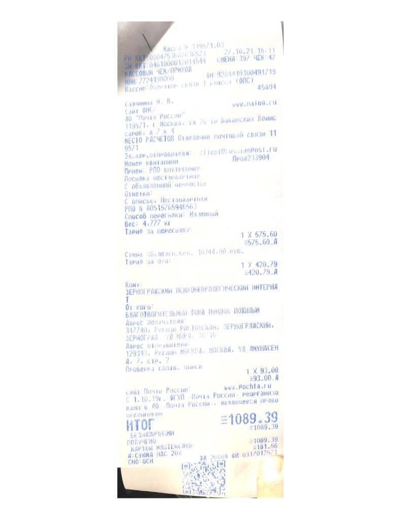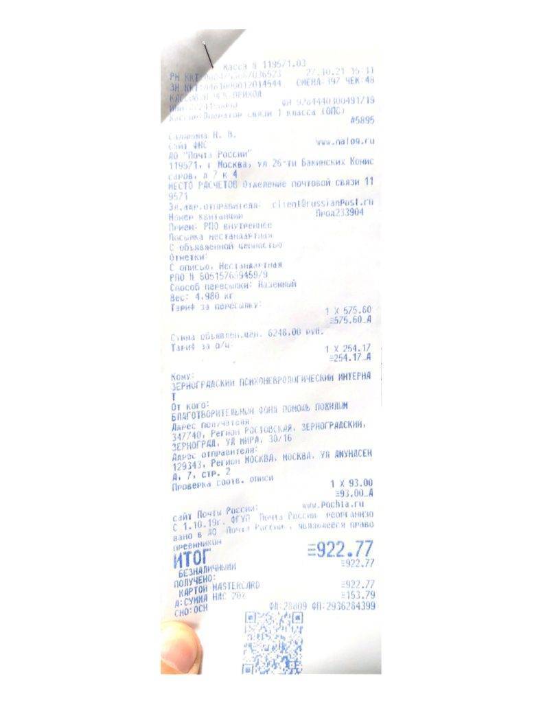 В связи с эпидемиологической обстановкой в стране и мире, в стационарных учреждениях социального обслуживания сохраняется дефицит средств индивидуальной защиты. 27 октября 2021 г. в Зерноградский психоневрологический интернат отправились очередные «коробочки добра». Для подопечных интерната были приобретены необходимые медикаменты, маски, перчатки, перевязочные материалы. Воспитанники учреждения получают медицинское и лекарственное обеспечение. Но не всегда выделенных средств хватает на самое необходимое.
