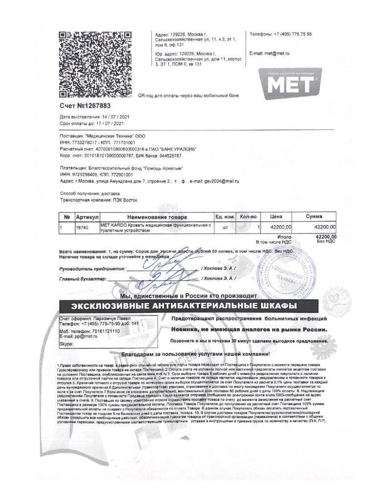 Большое спасибо за предоставленную многофункциональную кровать, которая так необходима маломобильным инвалидам. Надеемся на дальнейшее сотрудничество.