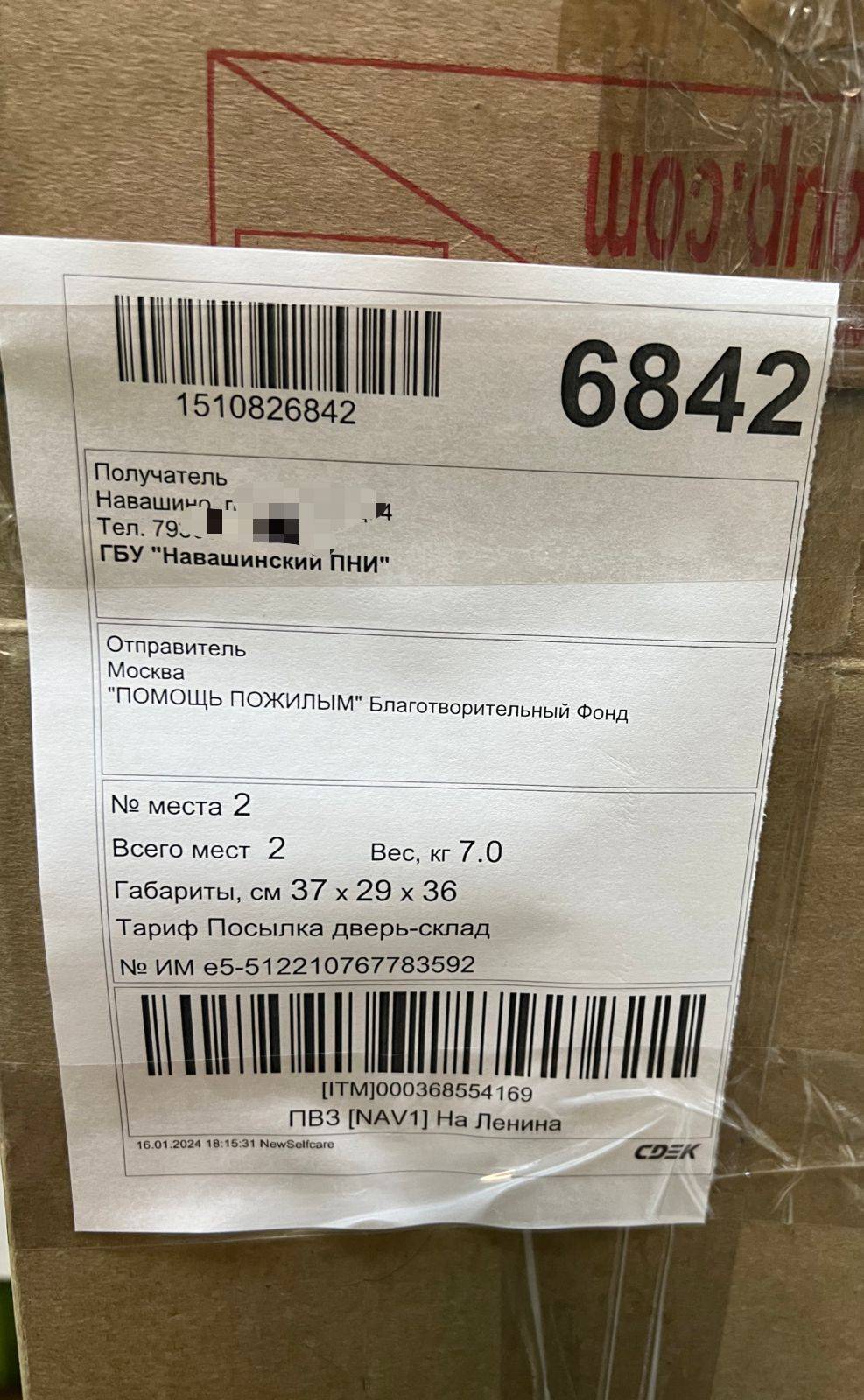 17 января 2024 года транспортной компанией мы отправили две коробочки с благотворительной помощью в Навашинский психоневрологический интернат.