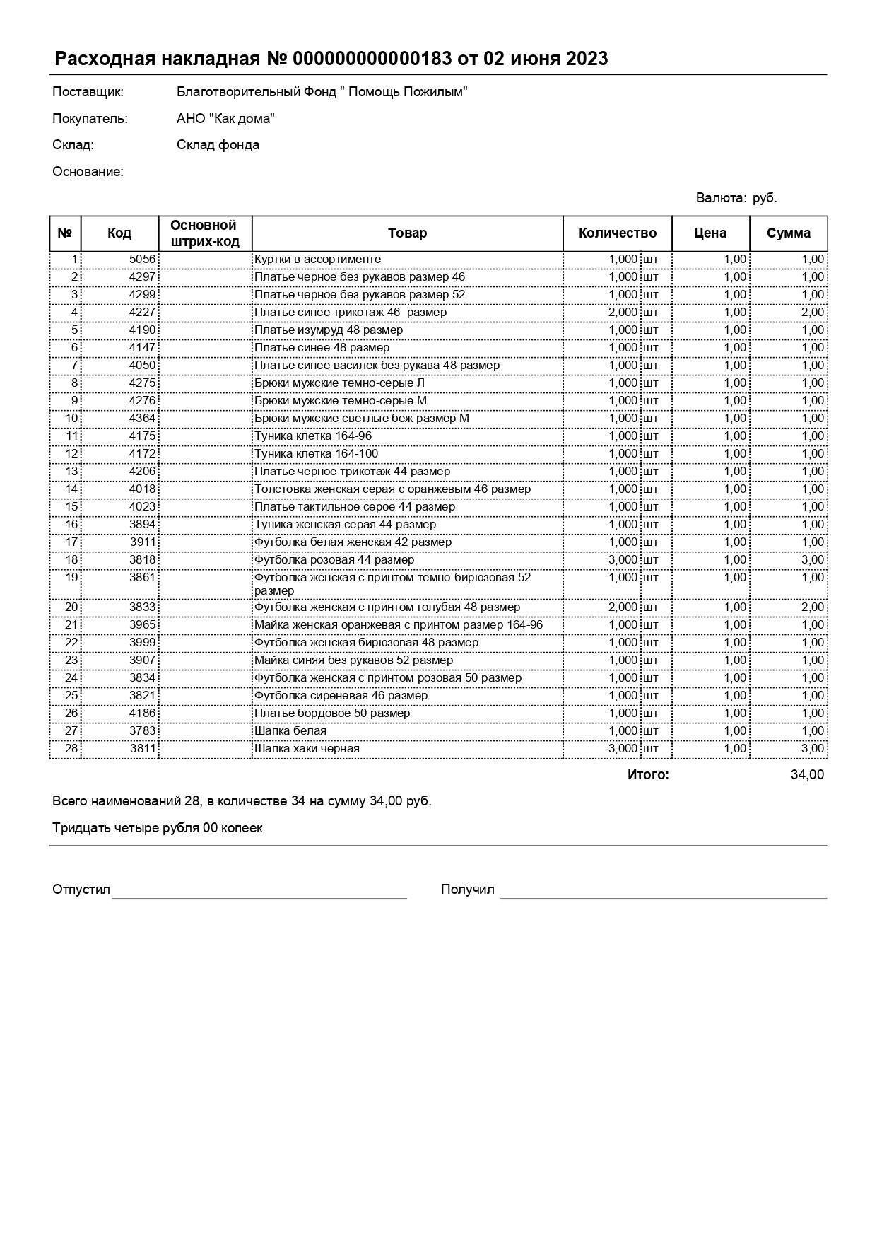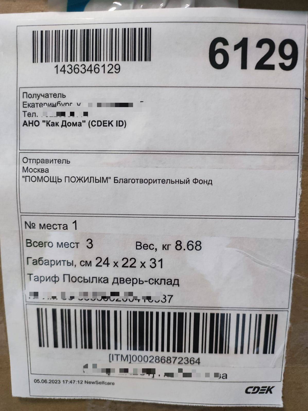 06 июня 2023 г. была оказана благотворительная помощь для частного пансионата для пожилых людей АНО "Как Дома", который находится в г. Екатеринбург. Помощь в виде интерьерных картин, жидкого мыла компании "Айкап", а так же новые вещи, были отправлены транспортной компанией для тех, кто в этом по-настоящему нуждается.