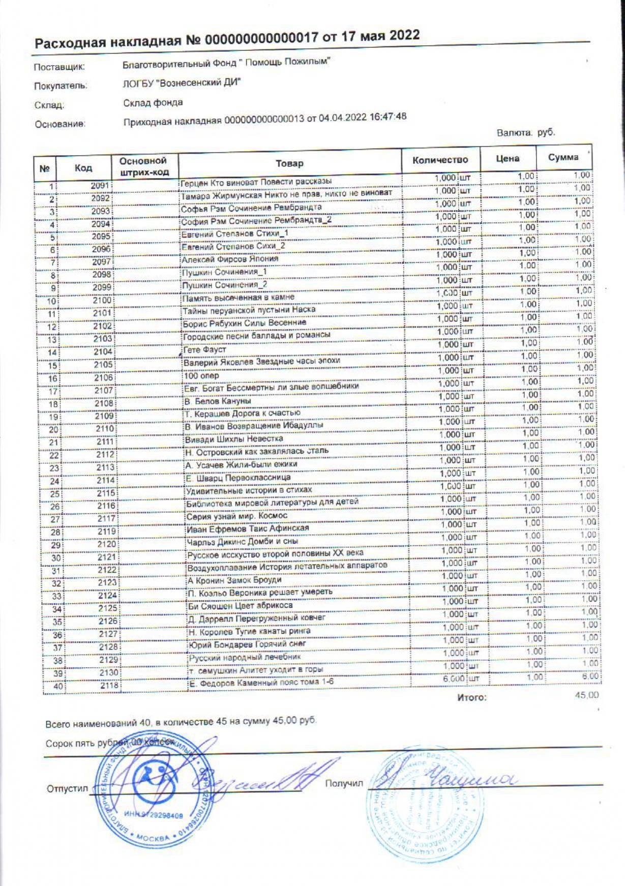 19 мая 2022 г. для проживающих Вознесенского дома-интерната были отправлены книги, согласно поступившей в феврале 2022 г. заявки.