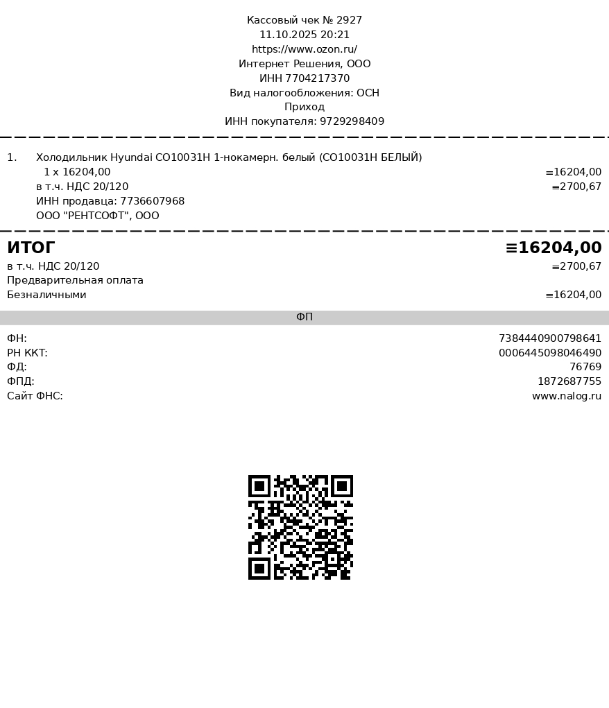 11 октября 2025 года Фонд приобрел холодильник для Мустафиной Бибинур Абдуловны. 15 октября 2025 холодильник был доставлен до адреса Бибинур Абдуловны.