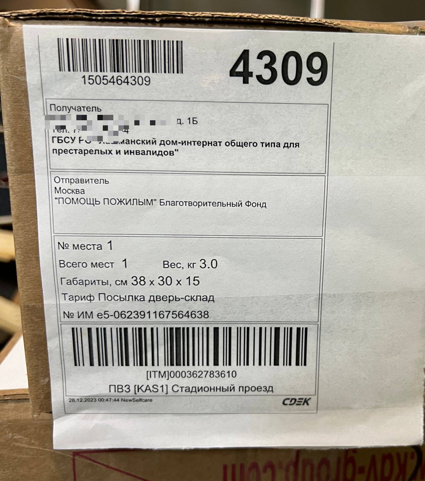 28 декабря 2023 года Фонд отправил сладкие подарки для ГБСУ РО "Лашманского дома-интерната общего типа для престарелых и инвалидов".