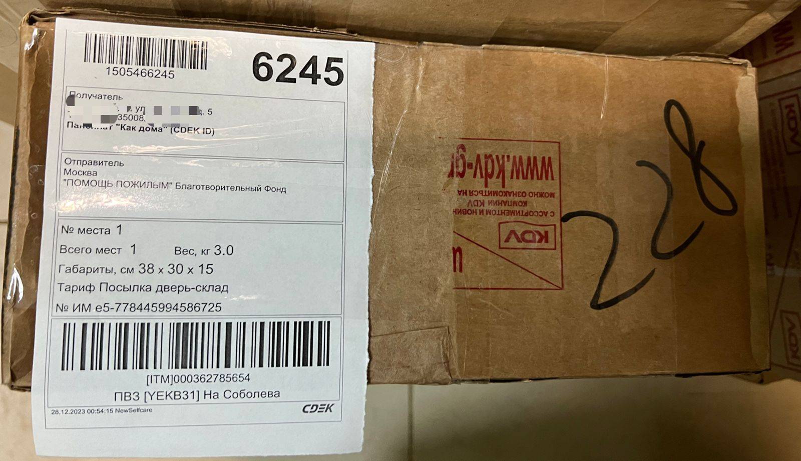 28 декабря 2023 г. мы отправили сладкие подарки для одиноких бабушек и дедушек, которые находятся на обслуживании в пансионате "Как Дома". Для нас нет понятия "частный дом престарелых" или "государственный". Все учреждения и проживающие в них для нас одинаково дороги, и мы постоянно оказываем помощь таким учреждениям и будем это делать и дальше!