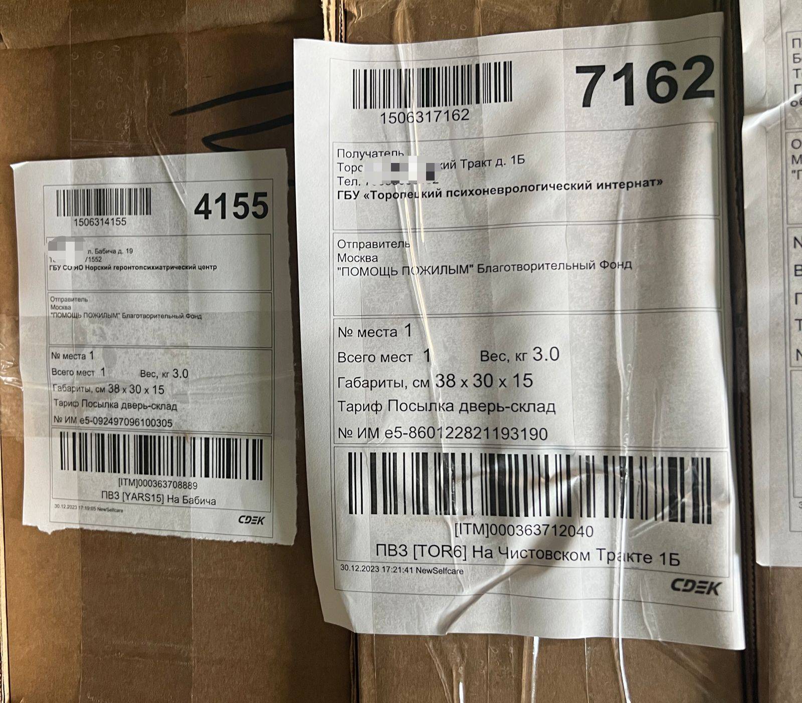 30 декабря 2023 г. Фонд отправил сладкие подарки и новогодние открытки в ГБУ "Торопецкий психоневролгический интернат".