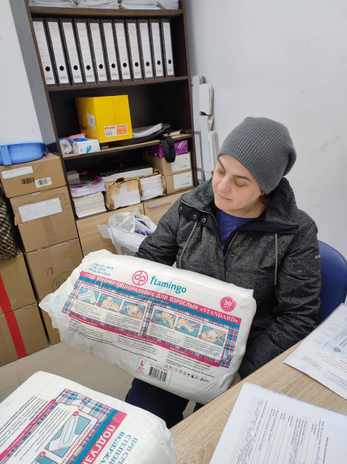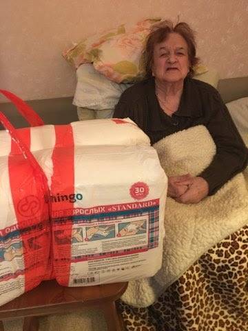 В октябре к нам обратилась внучка Антоновой Марины Михайловны, 1930 года рождения, которая после перенесенной короновирусной инфекции не смогла оправиться и потеряла возможность самостоятельно себя обслуживать. Прописана Марина Михайловна была в Москве, внучка Анна взяла бабушку к себе в г. Мытищи, сделав временную регистрацию бабушке. В связи с бюррократическими нестыковками в законодательстве, бабушка не получает социальную поддержку в полном объеме. Средства по уходу за лежачими больными, стоят не дешево. Именно поэтому Анна и обратилась к нам с просьбой приобрести подгузники для своей любимой бабушке. 18 ноября мы передали 2 пачки памперсов для Антоновой Марины Михайловны.