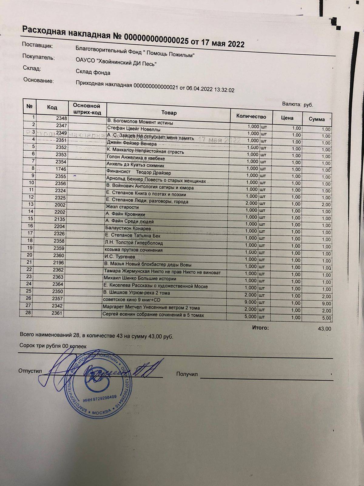 19 мая 2022 г. Фонд отправил книги в Хвойнинский дом-интрнат. Но к сожалению, у них не было возможности их забрать из Великого Новгорода. Нам пришлось оформить возврат, но будем искать другие варианты отправки.