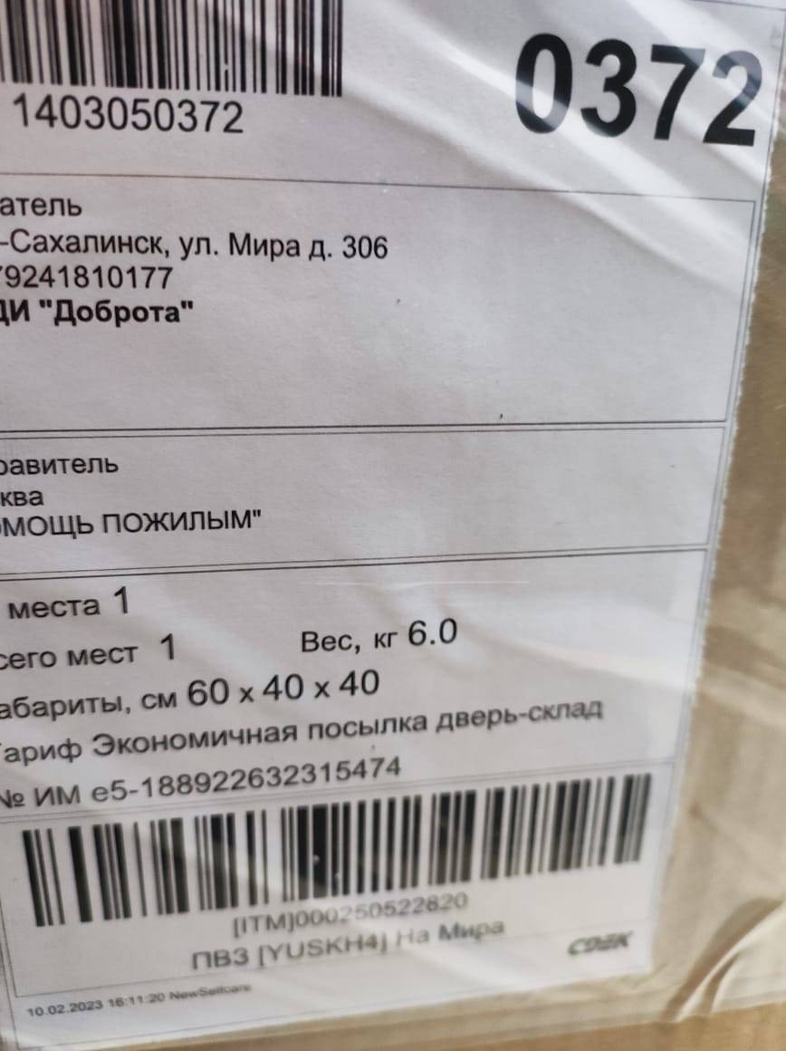11 февраля 2023 г. транспортной компанией была отправлена благотворительная помощь для ГБУ "Дома-интерната для граждан пожилого возраста и инвалидов "Доброта". Не смотря на отдаленность данного учреждения, мы надеемся что наша посылка дойдет до адресата в целости и сохранности.