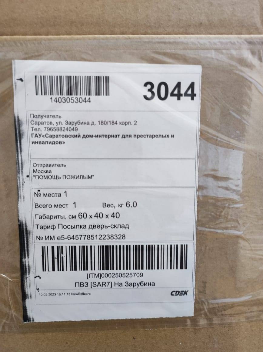 11 февраля 2023 г. была отправлена благотворительная помощь в виде подгузников, интерьерных картин, наборов для вышивания для пожилых людей Саратовского дома-интерната для престарелых и инвалидов.