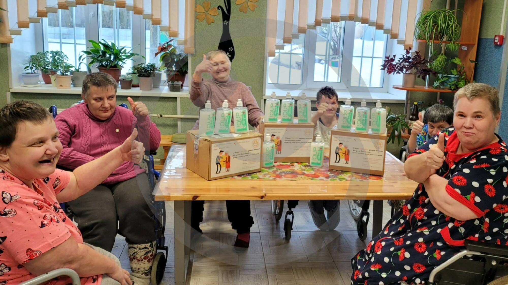 Администрация ЛОГБУ «Волховский ПНИ» выражает благодарность Благотворительному Фонду « Помощь пожилым» за оказанную помощь в виде жидкого антибактериального мыла.