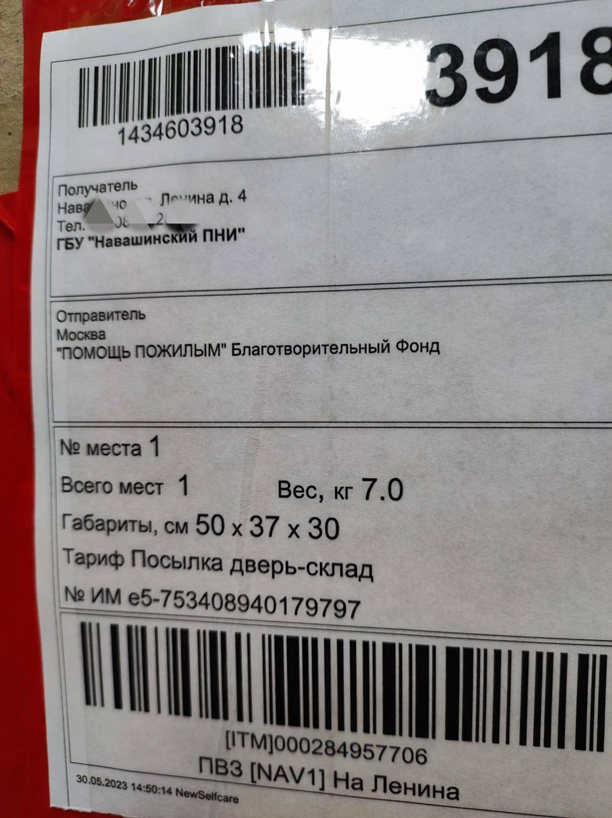 В рамках заключенного соглашения, а так же на основании полученной заявки, 30 мая 2023 г. Фонд отправил коробку с вещевым резервом для подопечных ГБУ "Навашинского психоневрологического интерната".