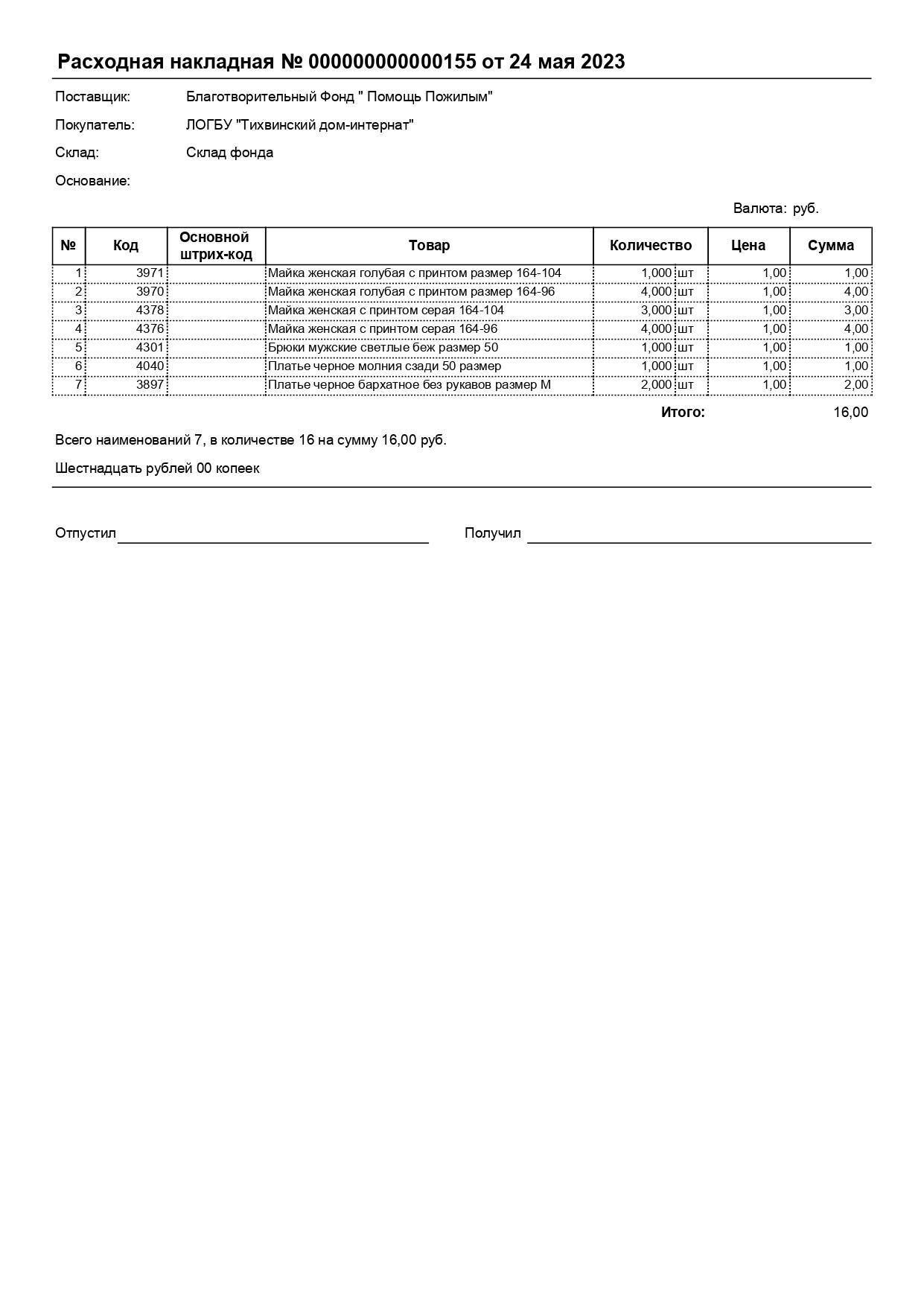Отправка вещей в ЛОГБУ "Тихвинский дом-интернат для престарелых и инвалидов"