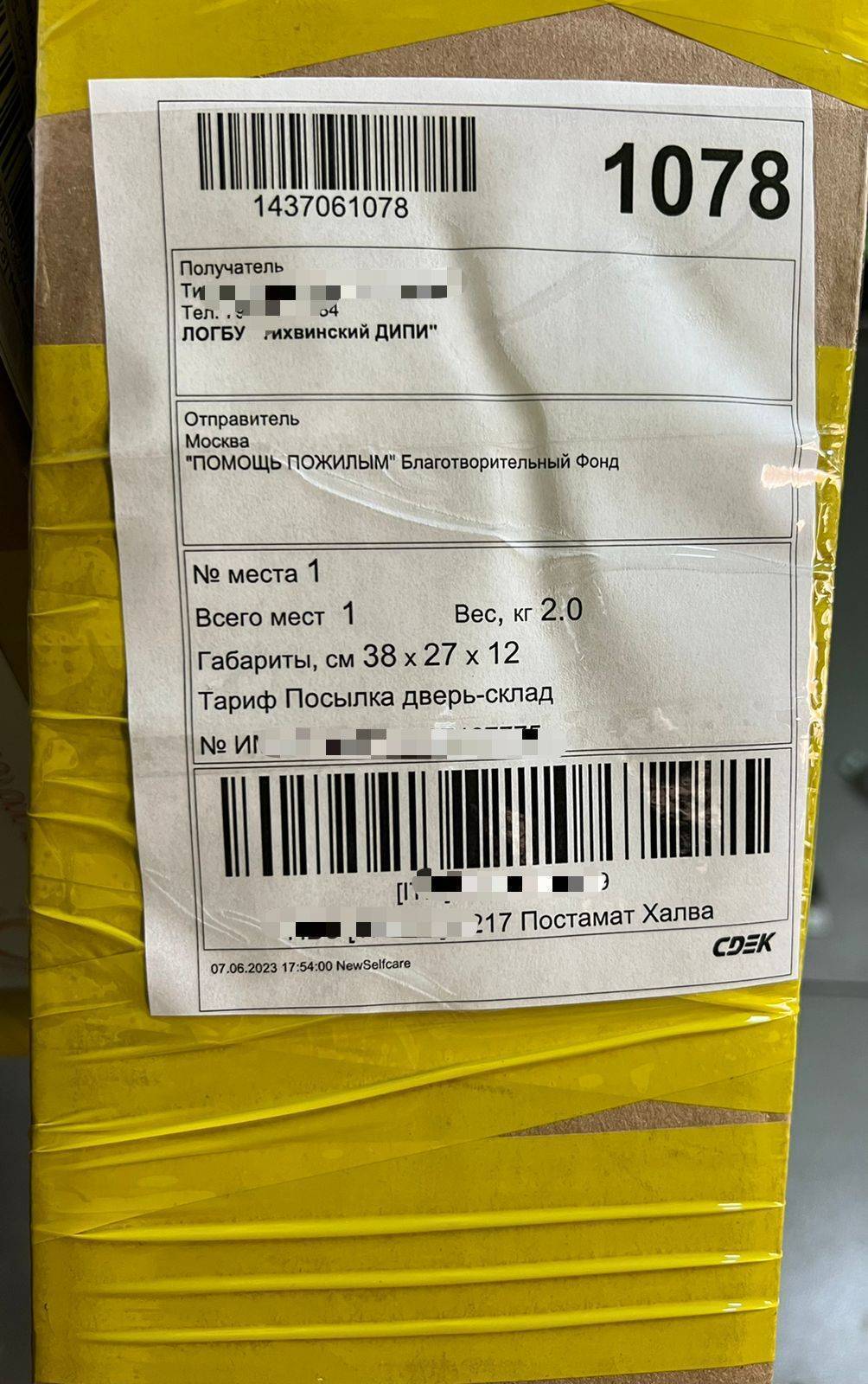 07 июня 2023 г. небольшая коробочка с вещевой помощью была отправлена для подопечных ЛОГБУ "Тихвинского дома-интерната для престарелых и инвалидов".