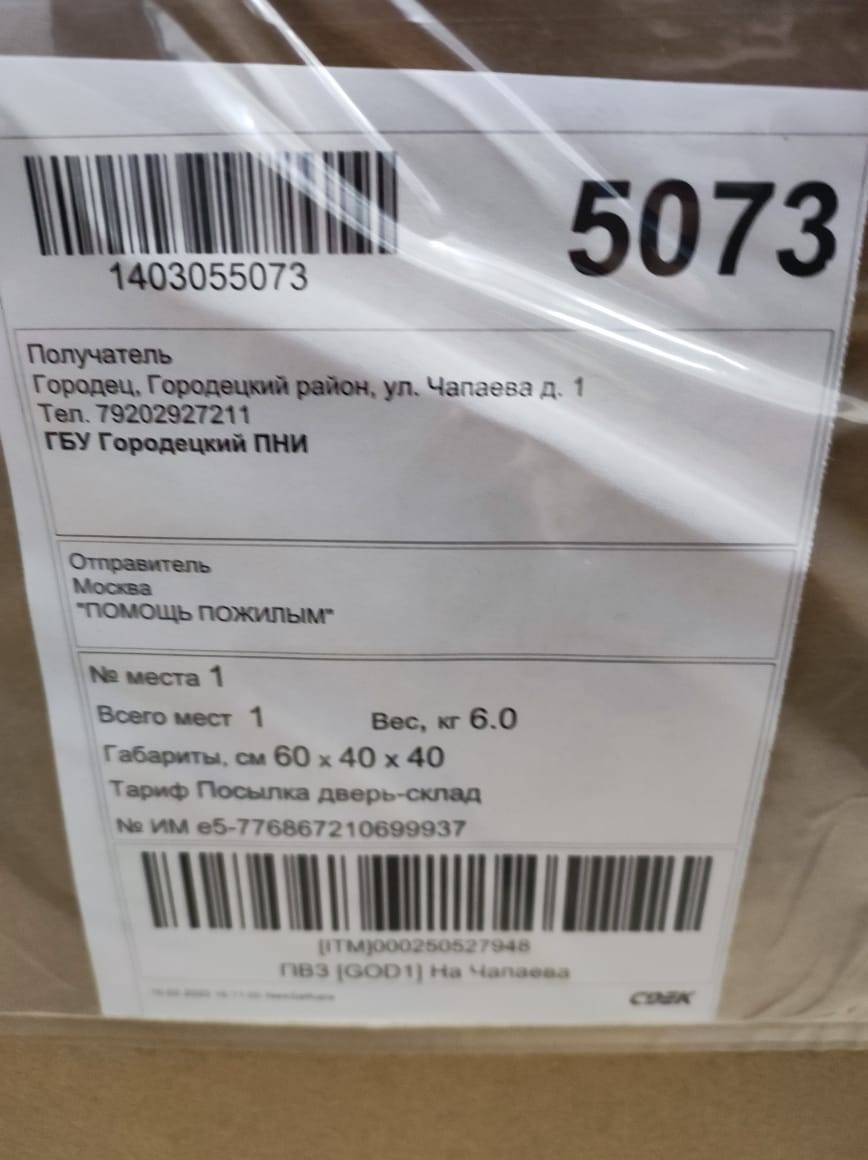 11 февраля 2023 г. Фонд отправил очередную благотворительную помощь для пожилых людей и инвалидов, которые находятся на обеспнчении ГБУ "Городецкого психоневрологического интерната". Была отправлена помощь в виде подгузников, интерьерных картин и наборов для вышивания.