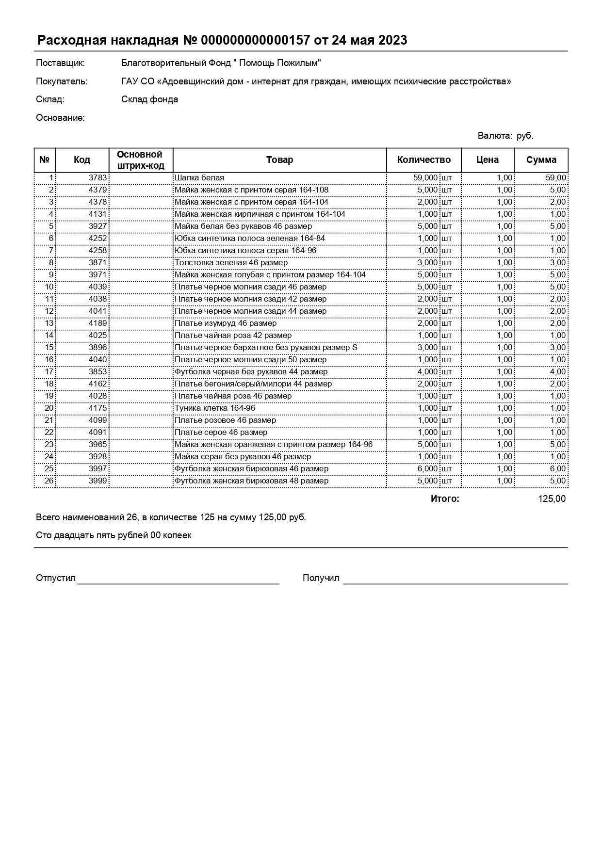 ГАУ СО «Адоевщинский дом - интернат для граждан, имеющих психические расстройства" обратился в Фонд с просьбой оказать вещевую помощь для своих подопечных. Совет фонда, рассмотрев поступившую заявку, принял решение оказать вещевую помощь для данного учреждения.
