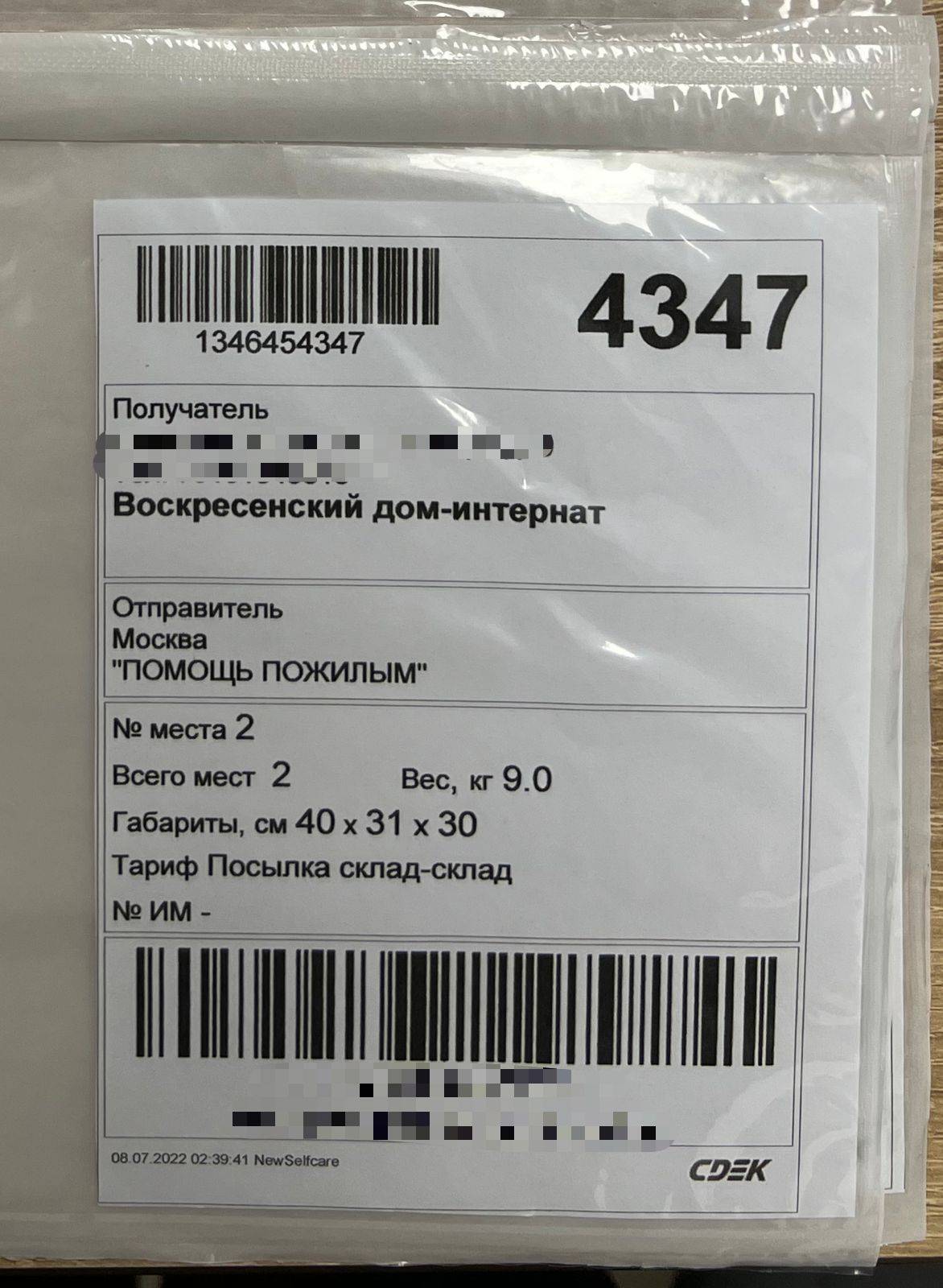 08 июля 2022 г. транспортной компанией СДЭК была отправлена вещевая помощь для проживающих Воскресеного дома-интерната для престарелых и инвалидов.